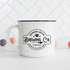 This 11 oz campfire mug is white with black speckles and black rim. The text is black. We recommend hand-washing this mug. Each is unique and therefore please keep in mind that there may be variations in the speckles.